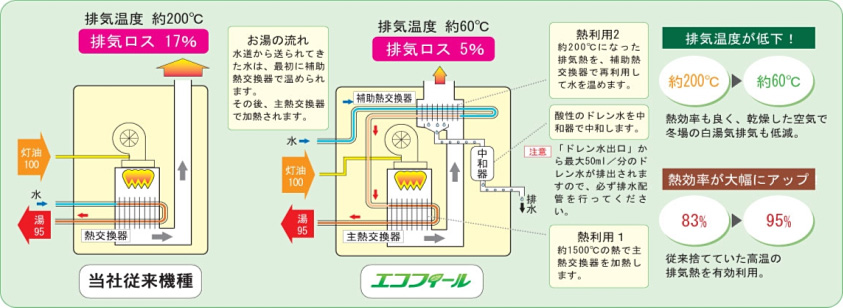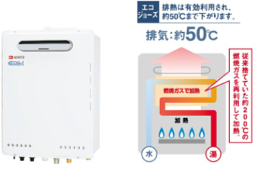 エコジョーズは今まで捨てていた排熱を利用して無駄なくお湯を作ります。