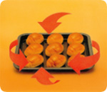 強火による熱が、パンなどの食材を外側から包み込むように加熱し、まんべんなく熱を行き渡らせます。