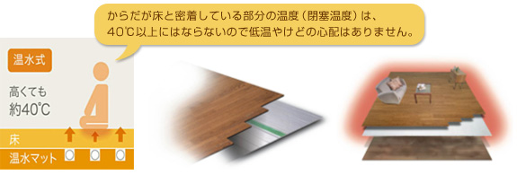 温水式床暖房は電気式に比べて、ランニングコストを抑えて快適性を発揮、新築やリフォームに、多彩な商品があります。