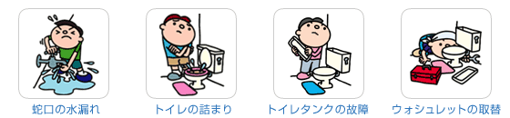 水廻りの漏れ、詰まりなどのトラブル、トイレ、洗面化粧台などの取替工事などあらゆることに対応致します。